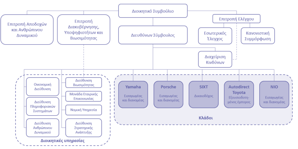 Η Εταιρεία με στόχο την αποτελεσματική και αποδοτική οργάνωση των δραστηριοτήτων της διαρθρώνεται σε 5 Επιχειρηματικούς Κλάδους και 5 Επιτελικές Διευθύνσεις.
